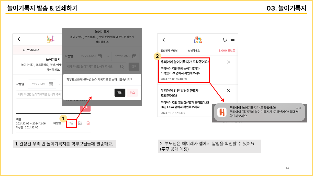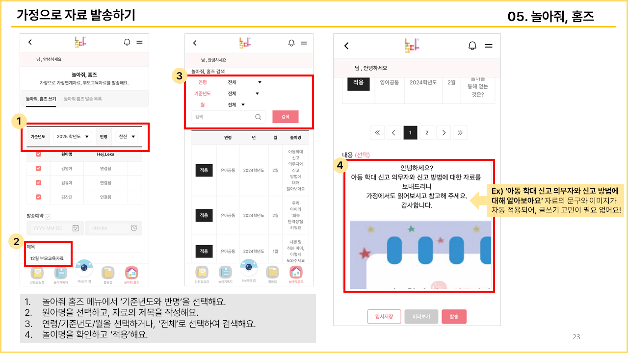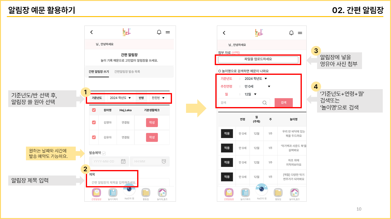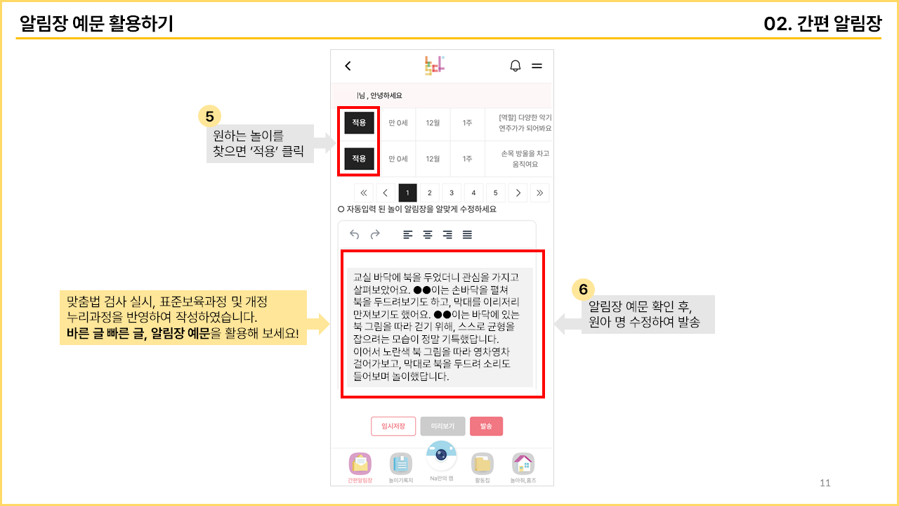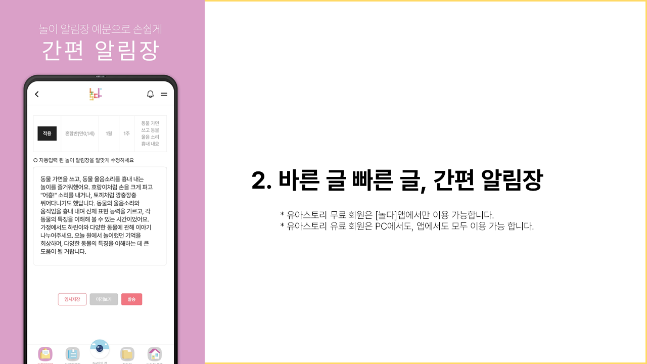 무료 앱 / 무료 알림장 예문 [놀다] 사용 매뉴얼