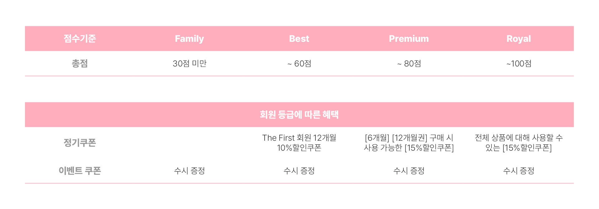 회원 등급은 1년에 한번 작년 사용 기준으로 정해집니다.