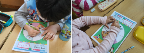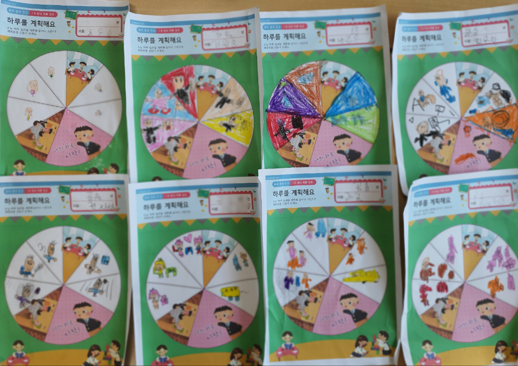 어린이집의 하루 일과에 대해 이야기를 나눈 후 유아들과 계획표를 그림으로 표현해  보았어요.