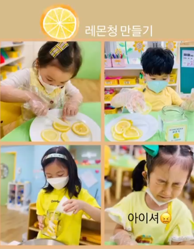 엄마아빠 사랑하는 마음이 가득 가득 담겨있는 레몬청만들기, 친구들과 협동하여 봄꽃밭 만들기