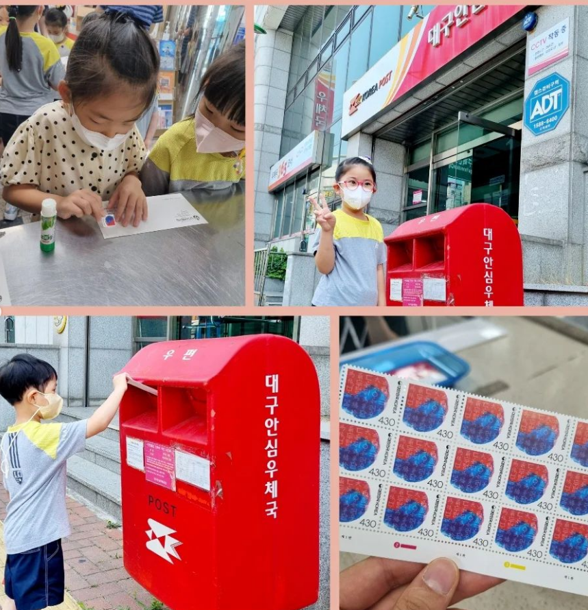 미리 준비한 편지에 우표를 사서 붙여보기도 했어요.