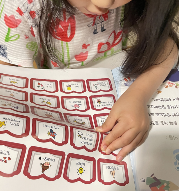 우리 아이가 7세이긴 하지만 아직 글을 쓰고 읽는것에 능숙하지는 않아서 활동지가 수월하진 않았어요.