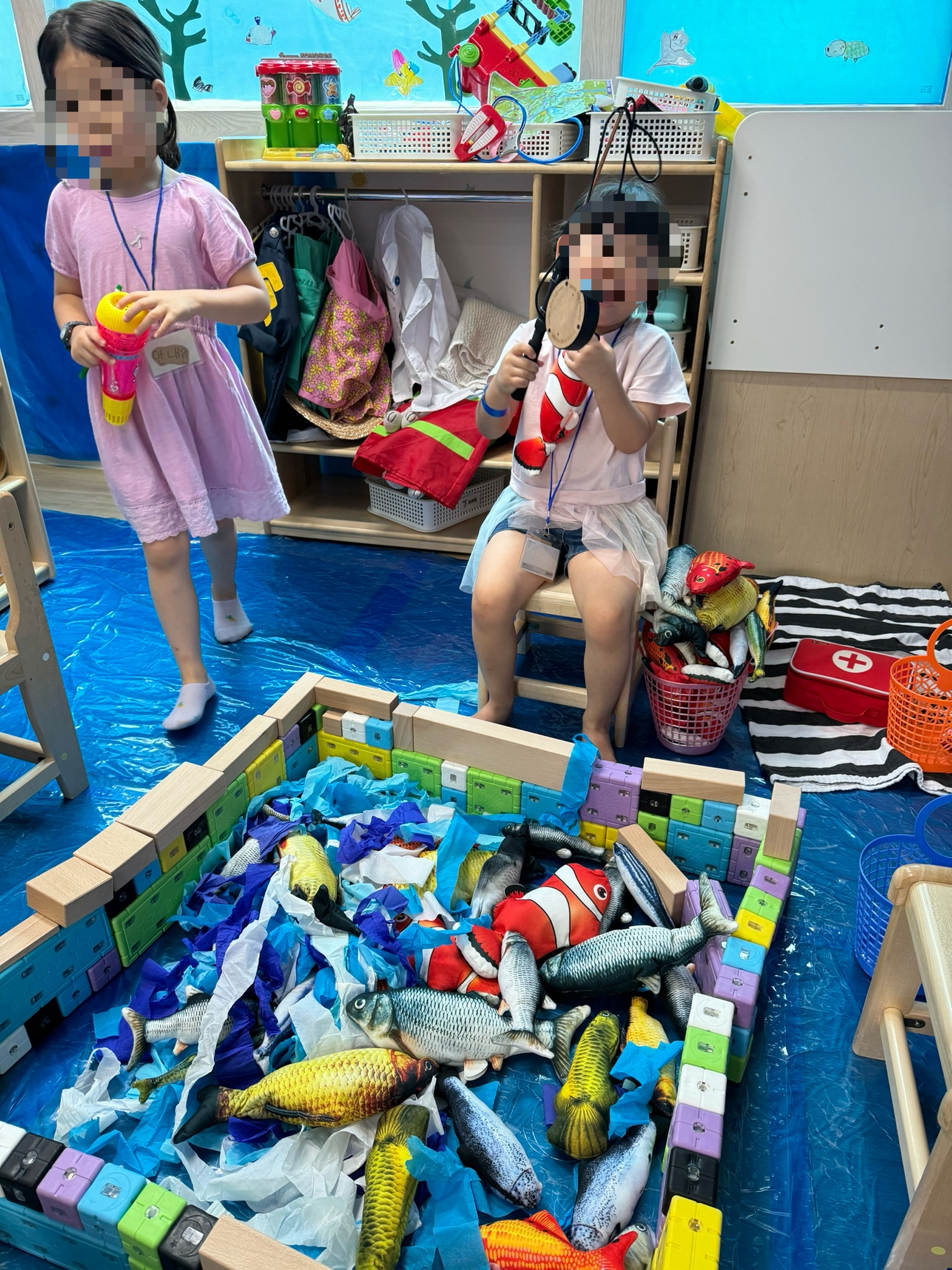 아쿠아리스트, 인어공주, 안내원 등 다양한 역할에 대해 알아보고 놀이를 진행하니 정말 즐거워했답니다:)