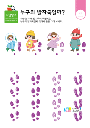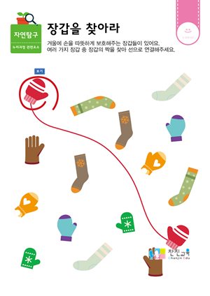 겨울 모자를 꾸며주세요. 활동지 겨울 장갑 짝 맞추기[수] 만들기 누구의 발자국일까? 활동지 장갑을 찾아라 활동지 |