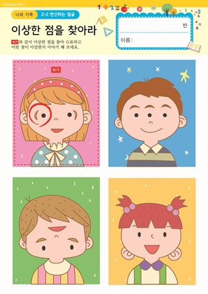 다양한 감정이 있어요 활동지 변신하는 얼굴 활동지 같은 표정을 찾아라! 활동지 여러 가지 표정이 있어요. 만들기 자석 얼굴 꾸미기 동요/음원 |