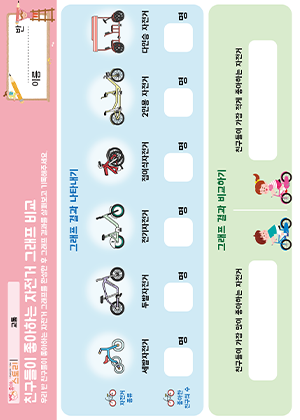 내 자전거를 소개해요. 활동지 자전거의 모양과 구조를 알아보아요. PPT , 활동지 자전거 안전 규칙과 표지판 도안 , PPT , 활동지 자전거의 종류를 알아보아요. PPT , 동영상 , 활동지 |
