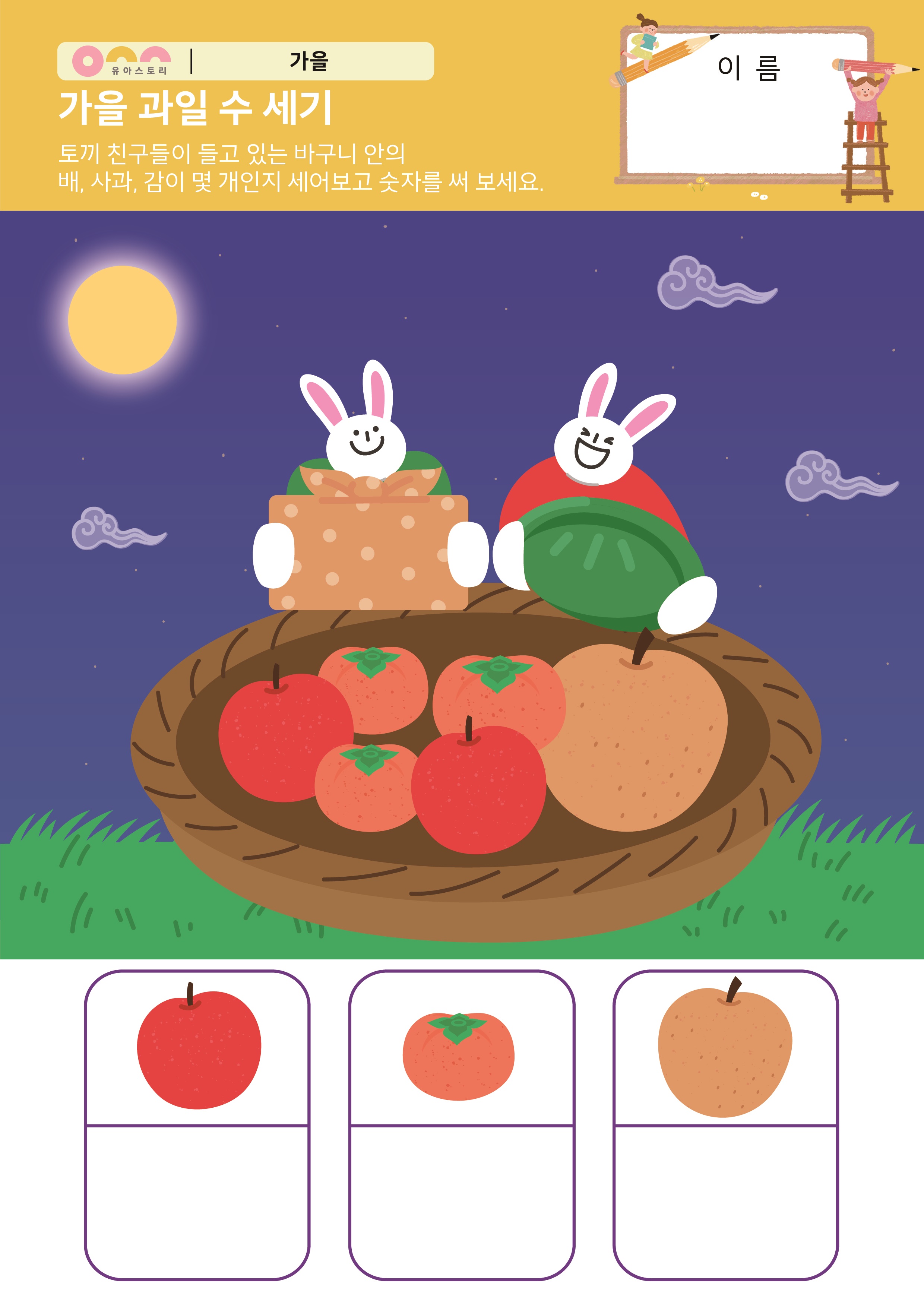 가을 옷을 입어요. 만들기 가을 과일 개수 세기 활동지 |