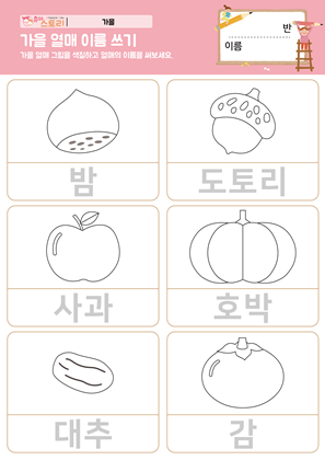 가을 과일을 관찰해요. 활동지 가을열매 반쪽모습 완성하기 활동지 |