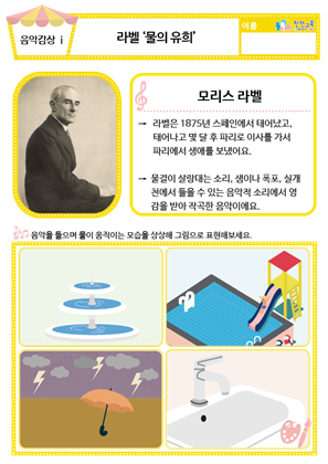 [음악감상] 드뷔시 ‘물의 요정’ 사진 , 동요/음원 , 활동지 [음악감상] 라벨 ‘물의 유희’ 사진 , 동요/음원 , 활동지 |