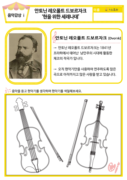 [새노래] 오 멋진 음악 동영상 , 도안 [음악감상] 안토닌 레오폴트 드보르자크 ‘현을 위한 세레나데’ 동요/음원 , 활동지 |