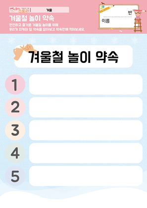 겨울에 할 수 있는 놀이와 겨울을 건강하게 보내는 방법에 관심을 가진다. |