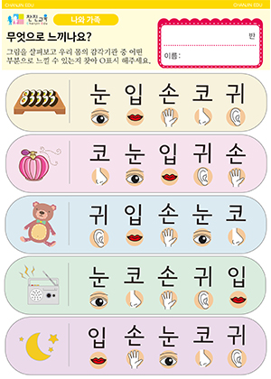감각기관의 이름을 알아요. 만들기 , 활동지 무엇으로 느끼나요? 활동지 |