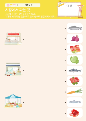가격별로 분류해요. 만들기 같은 물건을 담아요. 만들기 시장에서 파는 것 활동지 |