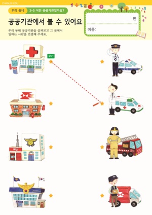 공공기관의 마크를 알아요. PPT , 활동지 우리 동네에 있는 다양한 공공기관 E-BOOK , PPT , 활동지 고마운 소방서! 동영상 , 만들기 , 활동지 |