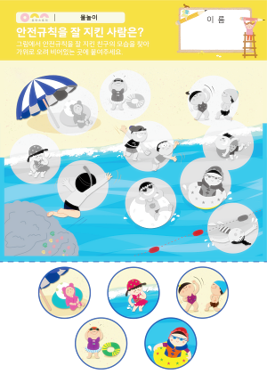 바다 친구들 활동지 물놀이 용품 패턴 놀이 만들기 안전규칙을 잘 지킨 사람은? 활동지 |
