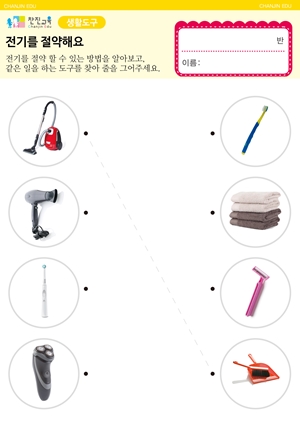 전기로 움직이는 생활도구를 알아보고 전기절약과 안전한 사용방법을 실천한다. |
