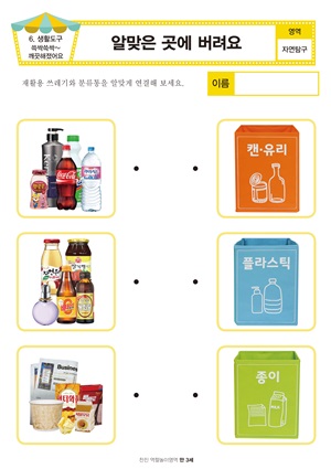쓰레기 분리수거 책 만들기 흙을 보호해요. 활동지 |