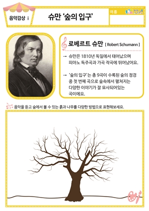 [새노래] 다시 쓸 수 있어요. 도안 , 동요/음원 [음악감상] 슈만 ‘숲의 입구’ 동요/음원 , 활동지 [새노래] 지구가 변하고 있어요. 도안 , 사진 |