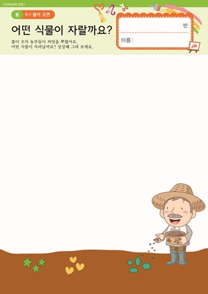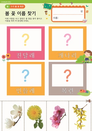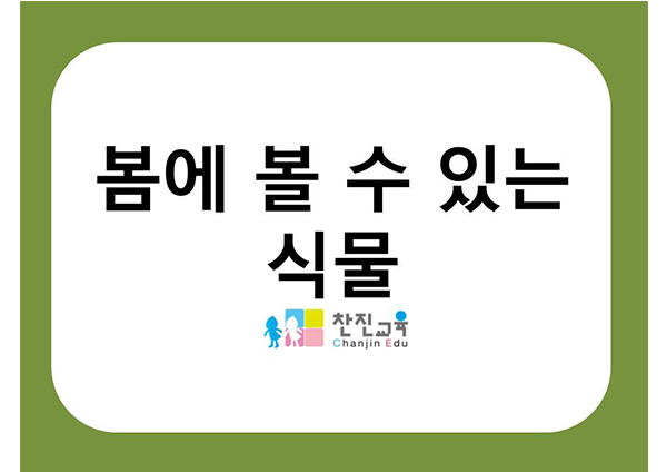 따뜻한 봄이 오면 PPT , 활동지 봄에 볼 수 있는 식물 PPT , 활동지 , E-BOOK 강낭콩의 성장과정 PPT 식물이 잘 자라려면 PPT , 활동지 , E-BOOK |
