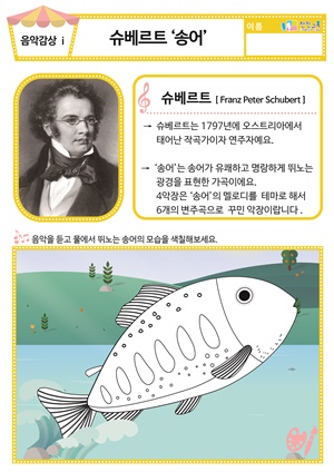 [음악감상] 생상스 ‘동물의 사육제(아쿠아리움)’ 동요/음원 , 활동지 [음악감상] 슈베르트 ‘송어’ PPT , 동요/음원 , 활동지 |