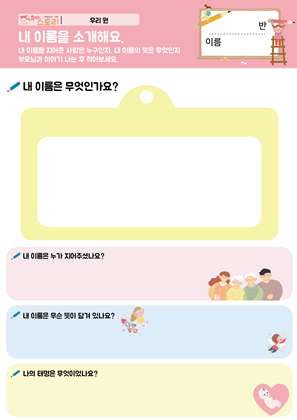 이름의 의미를 이해하고, 나와 친구의 이름에 관심을 가진다. |