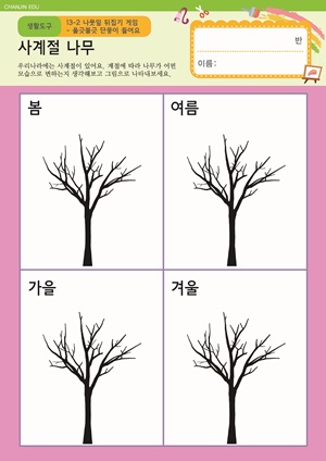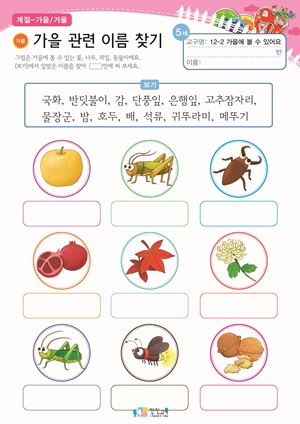 가을이 왔어요. E-BOOK , PPT , 활동지 울긋불긋 단풍이 들어요. 동영상 , PPT , 활동지 가을에 볼 수 있는 곤충과 식물 E-BOOK , PPT , 활동지 가을에는 불조심을 해요! 동영상 , PPT |