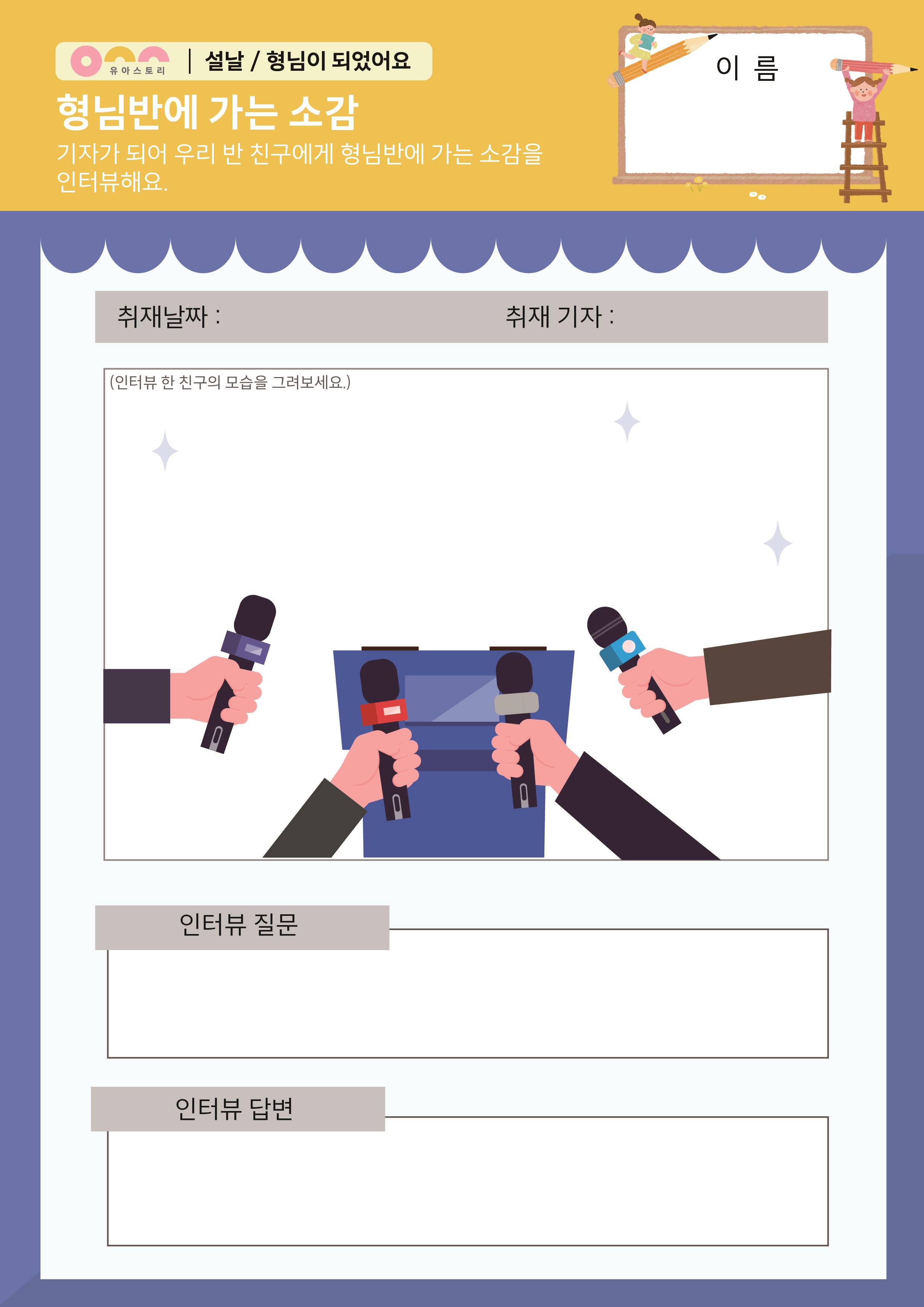 형님반이 되면 하고 싶은 일 활동지 형님이 된 친구를 인터뷰해요 활동지 |