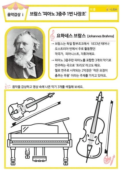 [새 노래] 숫자 노래 동영상 , 도안 [음악 감상] 브람스- 피아노 3중주 no.1 나장조 중 2악장 동영상 , 활동지 |