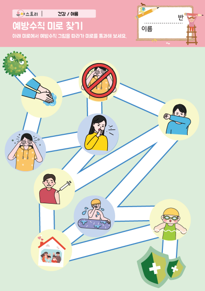 손 씻기 순서를 맞춰요 만들기 세균을 쏙쏙 없애요 만들기 예방수칙 미로 찾기 활동지 |