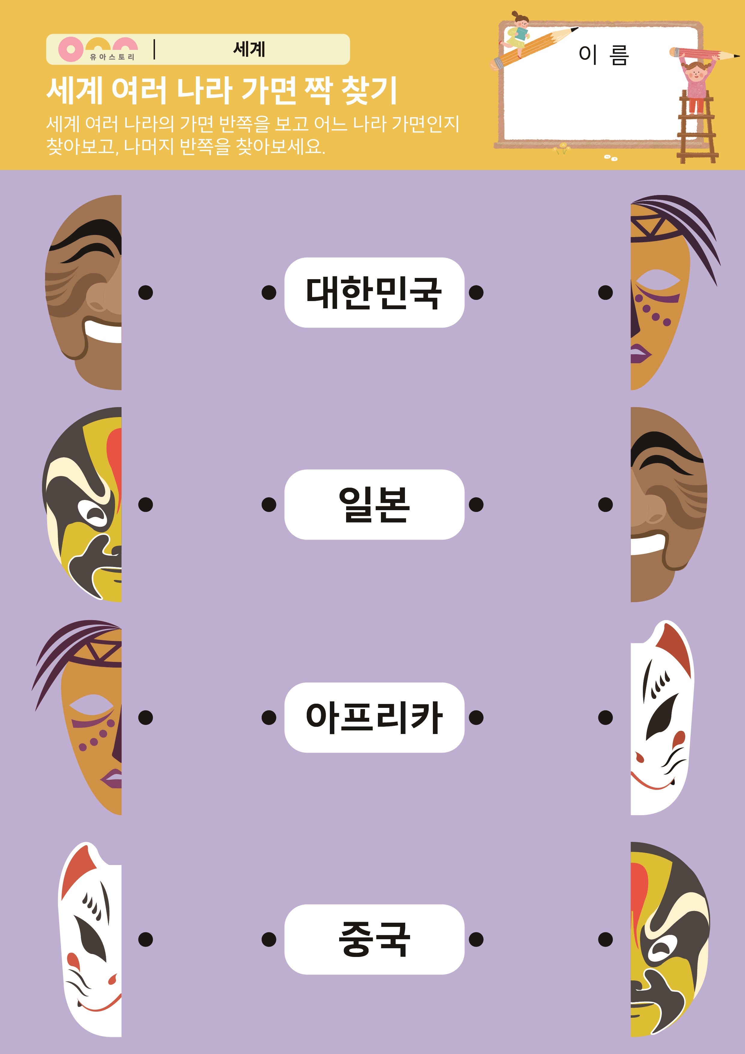 세계 여러 나라 건축물 바느질 만들기 세계 여러 나라 음식 탕후루 만들기 세계 여러 나라 가면 짝 찾기 활동지 |