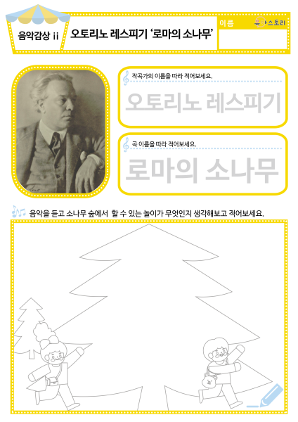 [새노래] 소나무여 동영상 , 도안 [음악 감상] 오토리노 레스피기 ‘로마의 소나무 – 제 1부 레스게세 저택의 소나무’ 동요/음원 , 활동지 |