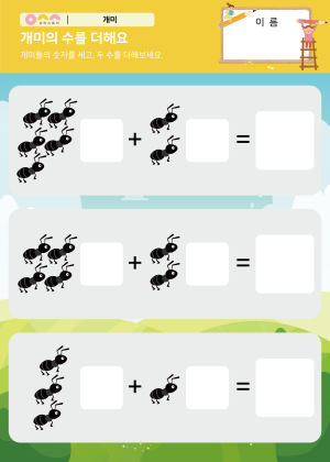 개미의 수를 더해요 활동지 맛있는 먹이를 찾아라! 만들기 개미를 찾아요 만들기 |