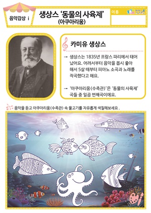 [음악감상] 슈베르트 ‘송어’ PPT , 동요/음원 , 활동지 [음악감상] 생상스 ‘동물의 사육제(아쿠아리움)’ 동요/음원 , 활동지 |