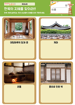 한옥의 지혜를 찾아라!! 동영상 , 활동지 |