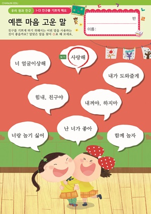 친구의 의미에 대해 관심을 갖고 좋은 친구가 되기 위해 노력하며 사이좋게 지낸다. |