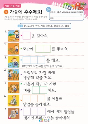 가을 열매 수수께끼 활동지 쌀을 수확하는 과정 만들기 |
