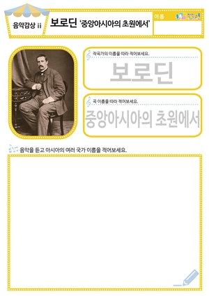 [새노래] 앞으로 동요/음원 [새노래] 지구마을 친구들 도안 , 동요/음원 [음악감상] 보로딘 ‘중앙아시아의 초원에서’ 동요/음원 , 활동지 |