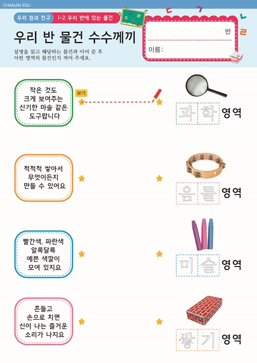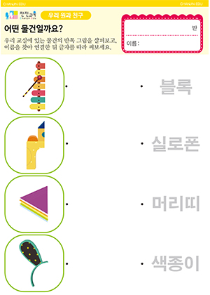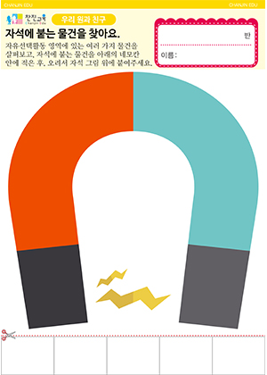 어떤 물건일까요?(반쪽 그림) 만들기 , 활동지 자석에 붙는 물건을 찾아요. 활동지 |