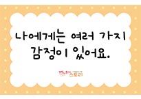 다양한 감정이 있어요. PPT , 활동지 나에게는 여러 가지 감정이 있어요. E-BOOK , PPT , 활동지 내가 잘할 수 있는 것 E-BOOK , PPT |