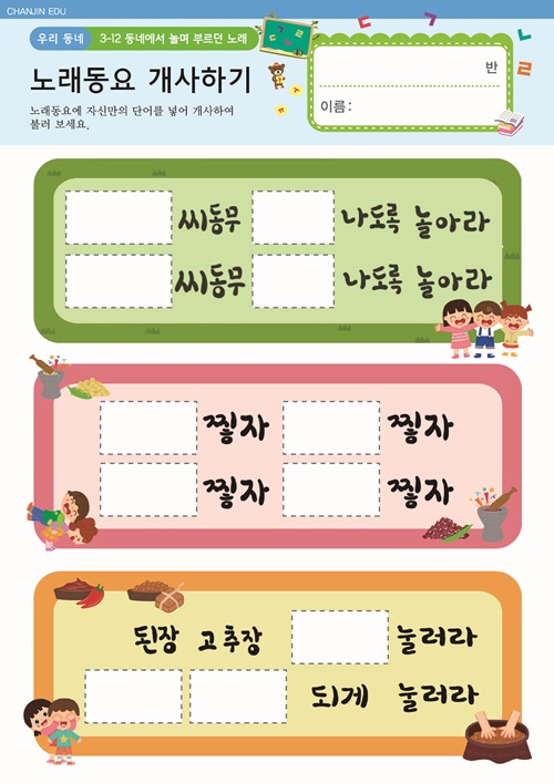 동네에서 놀며 부르던 노래 활동지 |