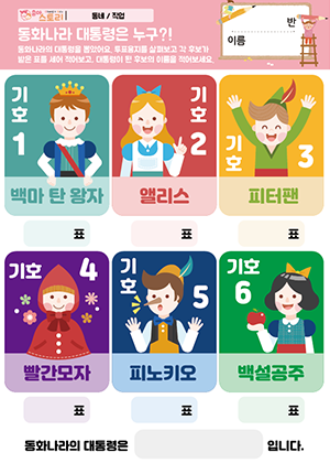 동화나라 대통령은 누구?! 활동지 우리 반 대표 선거 그래프 활동지 , 만들기 유효표를 찾아요!! 활동지 투표 절차를 알아봐요. 활동지 |