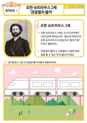 [새노래] 동그란 바퀴 동요/음원 [새노래] 기차를 타고 동요/음원 [음악감상] 요한 슈트라우스 2세 ‘관광열차 폴카’ 동요/음원 , 활동지 |