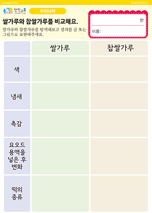 쌀가루와 찹쌀가루를 비교해요. 활동지 |