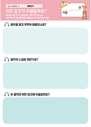 라디오 광고를 들어요. 활동지 어떤 광고가 어울릴까요? 활동지 , 동요/음원 |
