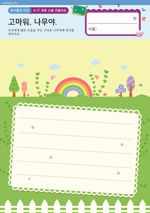 오늘은 식목일! PPT , 도안 , 활동지 식물이 잘 자라려면 PPT , 활동지 , E-BOOK 푸른 산을 만들어요. PPT , 활동지 |