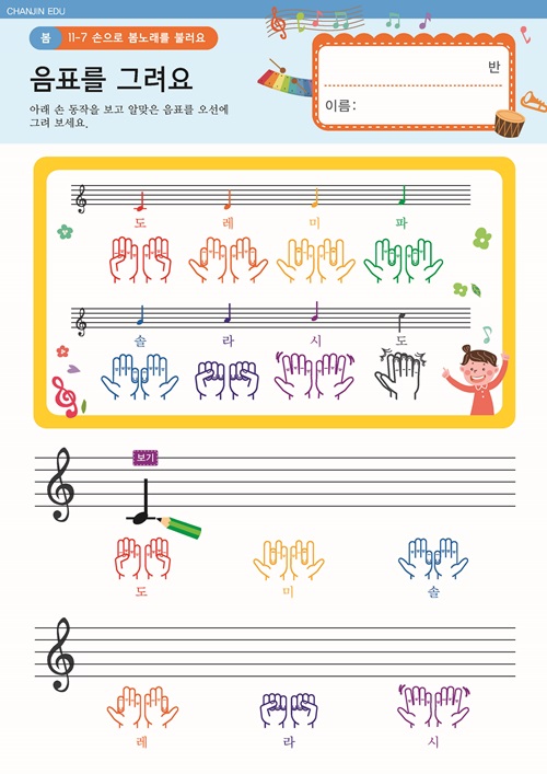 손으로 봄노래를 불러요 활동지 원목악기로 연주해요. 동요/음원 |