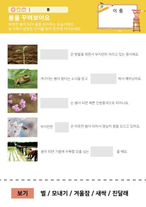 봄을 건강하게 지내요 활동지 푸른 산을 만들어요 활동지 맛있는 채소다! 활동지 나무의 길이를 재어보아요. 만들기 |