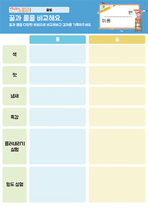 벌의 구조를 알아보아요. PPT , 활동지 꿀과 물을 비교해요. 동영상 , 활동지 |