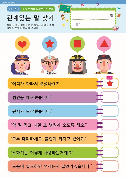 다양한 직업이 있어요. PPT , 활동지 고맙습니다! 우체부 아저씨 PPT , 활동지 밤에도 일하시는 분들이 있어요. E-BOOK , PPT |