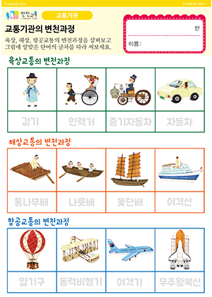 교통기관의 변천과정 활동지 |